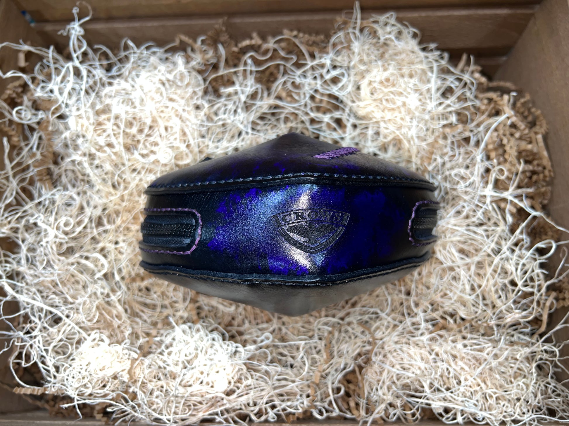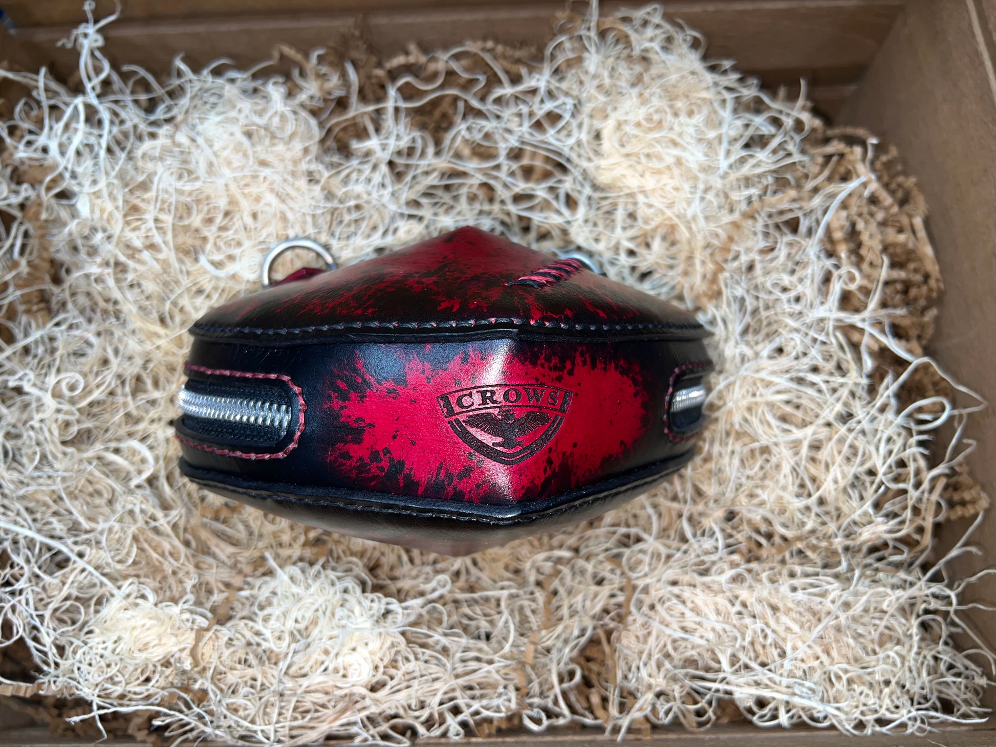 These cute little handbags are completely handmade and would be the perfect accessory for any occasion. All holes hand punched, hand dyed, and hand sewn together. The bag is 6 1/2" wide 6" tall 2 1/2" deep.